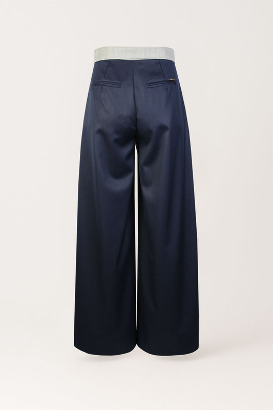 Calças de Alfaiataria Bicolor com Cintura Cruzada