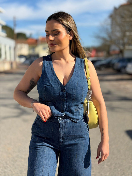 Conjunto Denim Elegante (Colete + Calça Wide Leg)