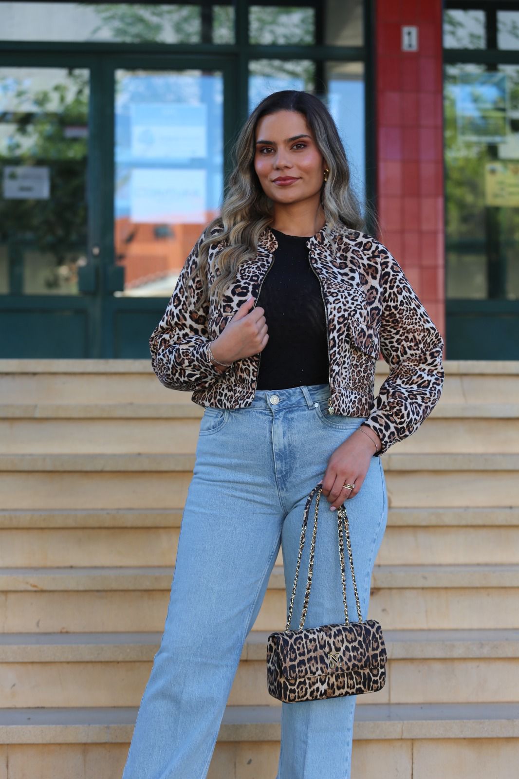 Casaco bomber em padrão animal print, cheio de personalidade e estilo.