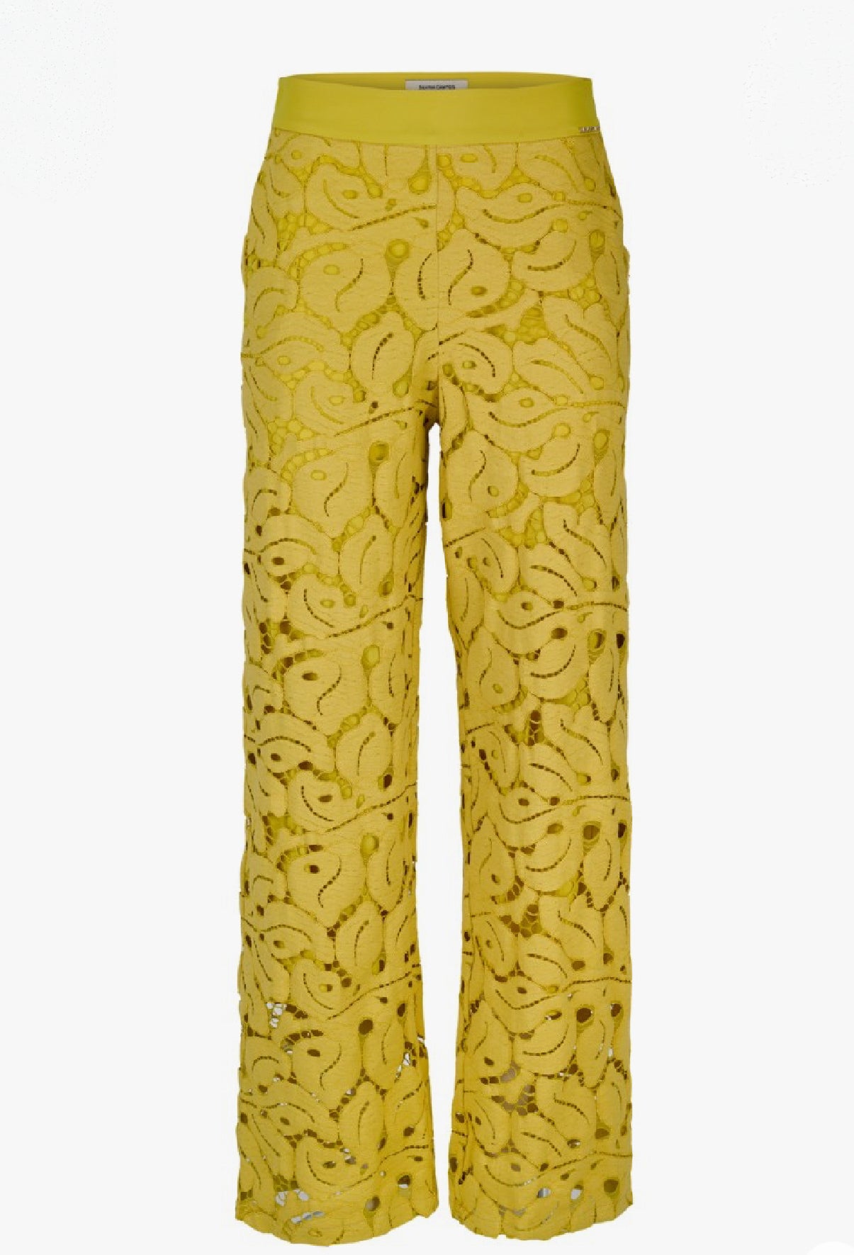 As calças de renda amarelas Silvina Campos são a definição de elegância descontraída. Com corte fluido, cintura subida e um trabalho rendado intricado, equilibram o charme artesanal com uma atitude contemporânea. O forro curto proporciona o contraste ideal, revelando subtilmente as pernas através dos padrões da renda. Ideais para festivais, férias de verão ou eventos ao ar livre, combinam perfeitamente com a blusa coordenada para um look coeso e fashion-forward, ou com um top simples para um efeito mais casual. São tão versáteis quanto únicas, uma peça que eleva qualquer look com um toque inesperado de textura e leveza.