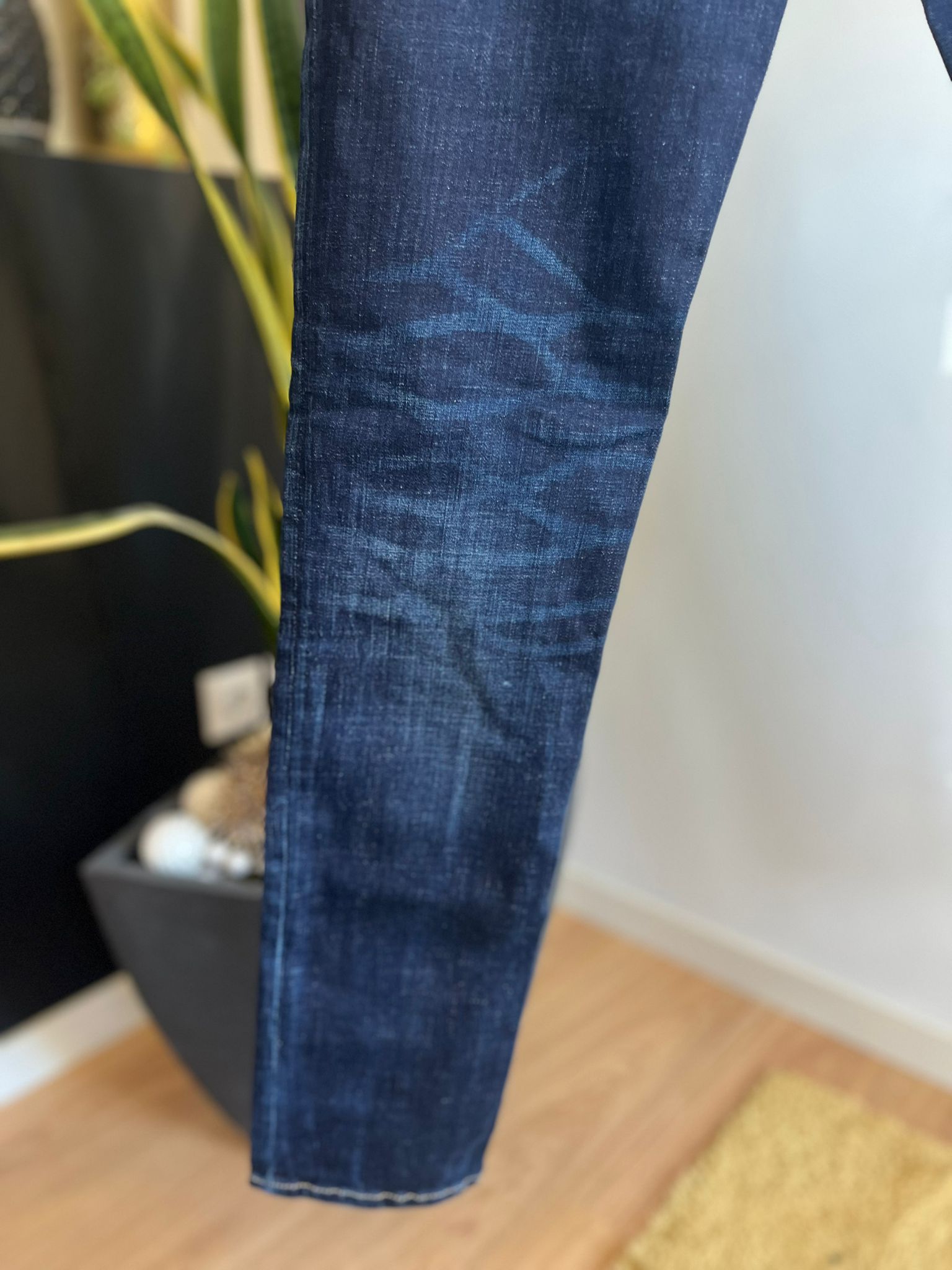 O acabamento wash azul médio com detalhes usados e ligeiros rasgões confere um estilo urbano e contemporâneo, ideal para conjugar com camisolas básicas, t-shirts ou casacos mais elegantes. Versáteis e cheias de atitude, estas calças são perfeitas para o dia a dia ou para um look mais arriscado à noite.