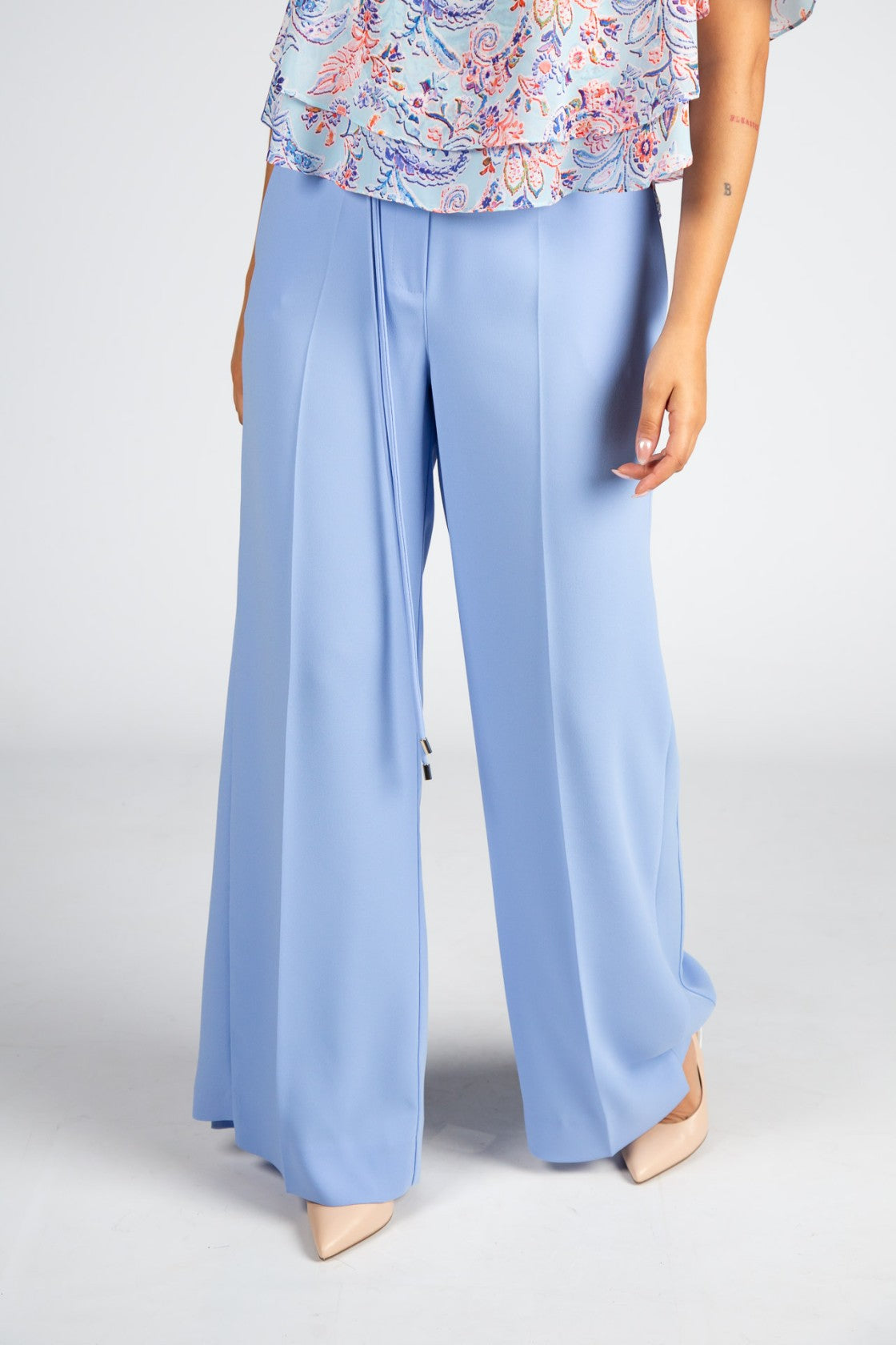 Apaixone-se pelas pantalonas Silvina Campos azul claro, uma peça indispensável em qualquer guarda-roupa moderno. Com um design fluido e corte amplo, estas calças combinam elegância e conforto, tornando-se perfeitas para várias ocasiões. Apresentam dois bolsos falsos de vivo atrás, dois bolsos de chapa frontais e apertam com fecho éclair frontal e gancho metálico ocultos.
