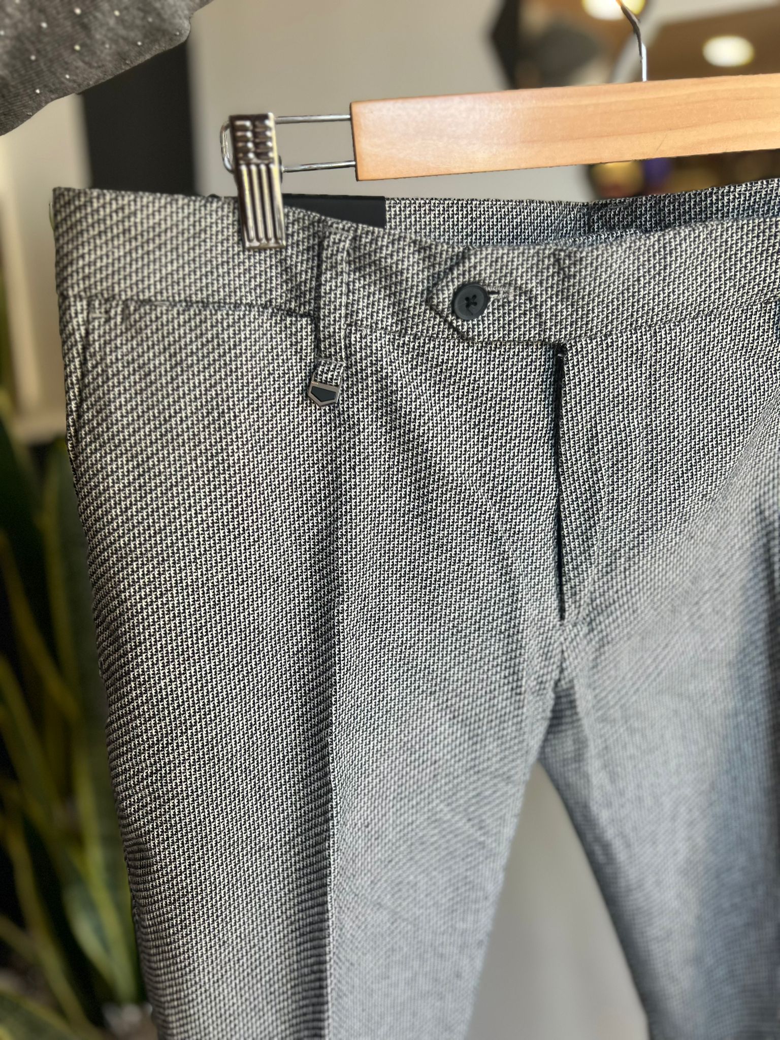 As calças Skinny Fit da Antony Morato são a escolha ideal para quem procura um visual moderno, sofisticado e versátil. Com tecido texturado em micro-padrão preto e cinza, este modelo oferece um toque elegante que combina perfeitamente tanto com looks casuais chic como com outfits mais formais.