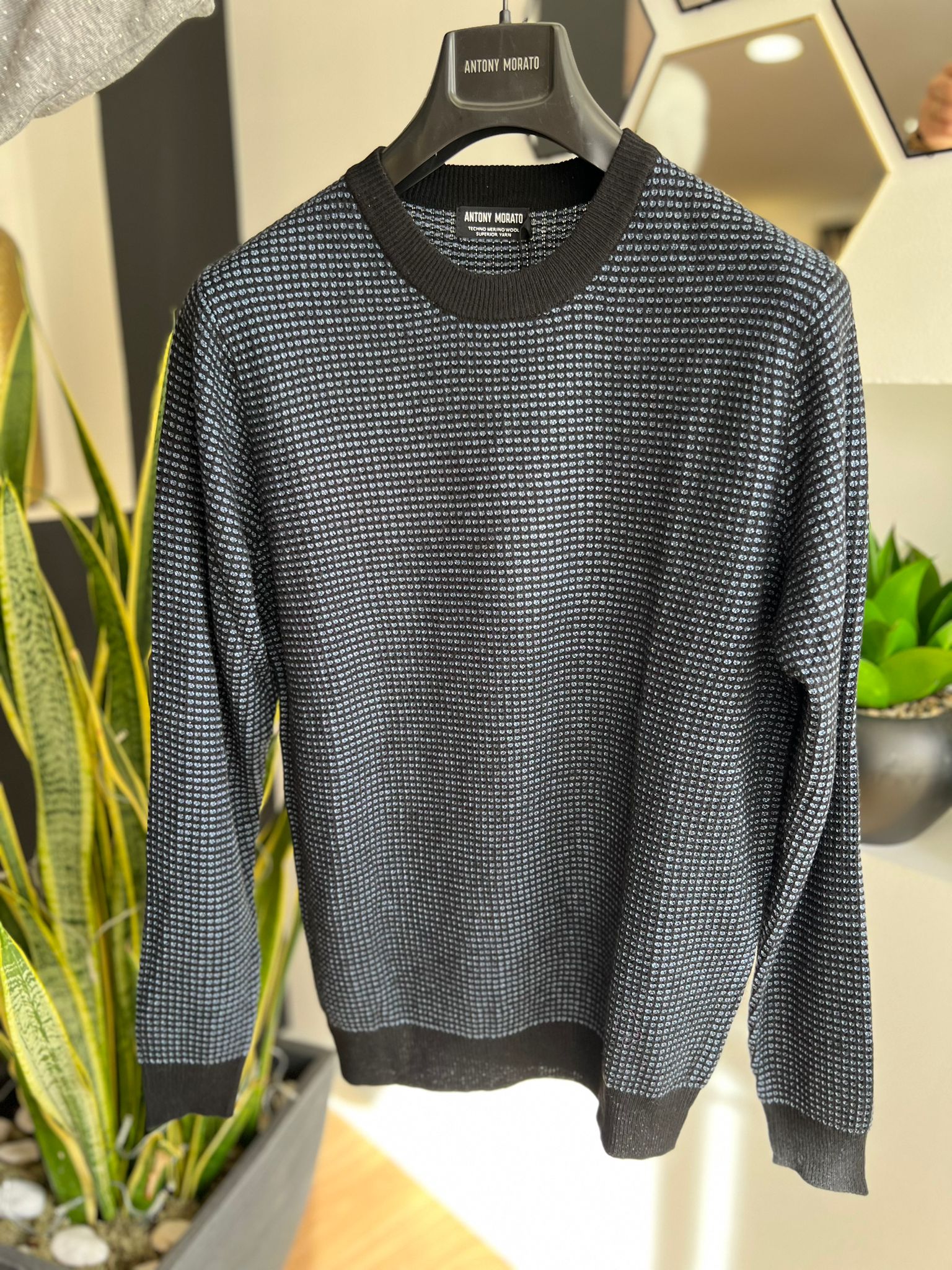 Atualiza o teu guarda-roupa com esta camisola Antony Morato, concebida com um padrão texturado bicolor em azul e preto que adiciona dimensão e estilo ao look. O tecido macio e confortável adapta-se ao corpo sem apertar, oferecendo um uso diário leve e agradável.