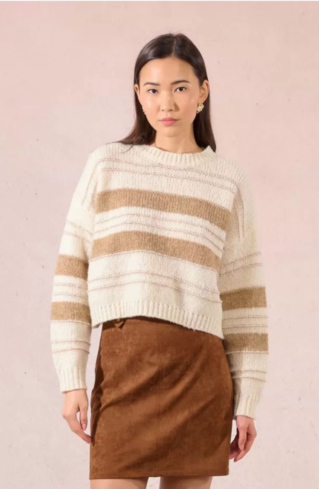 Camisola curta de tricô listrado