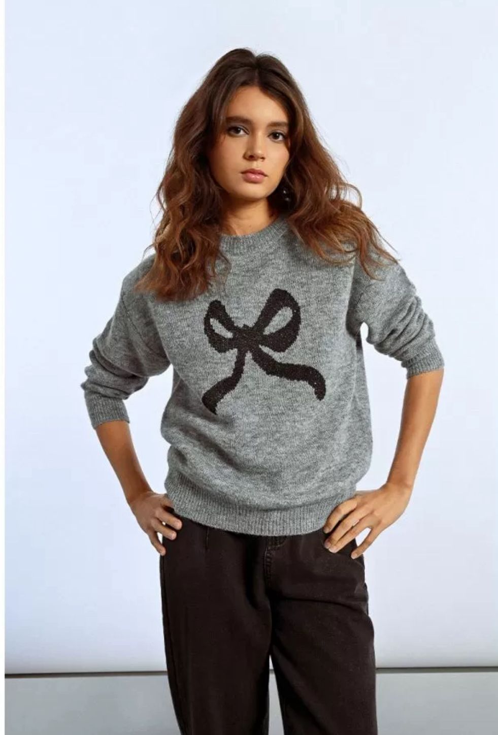 Camisola de Malha com Laço Bordado – Cinza