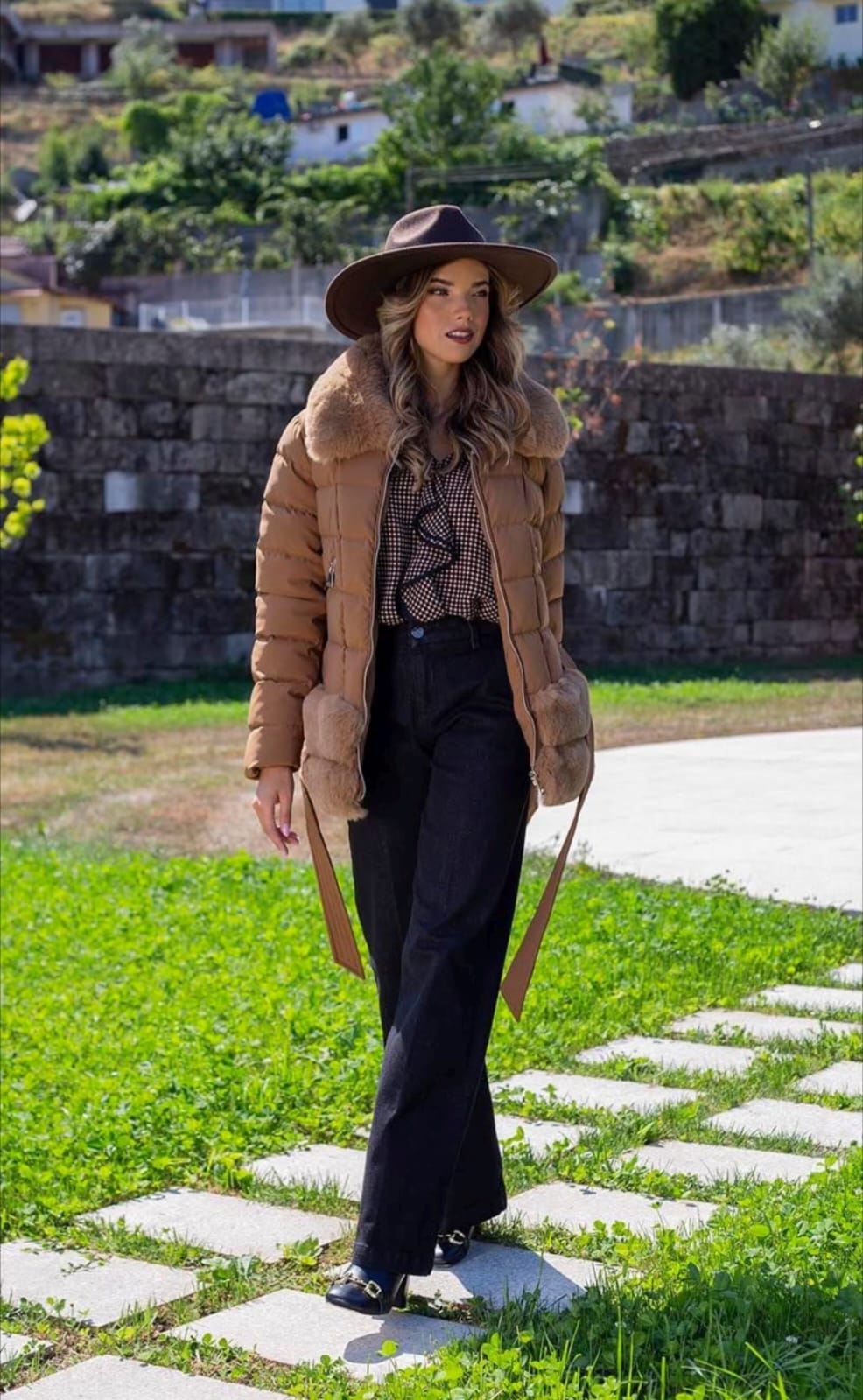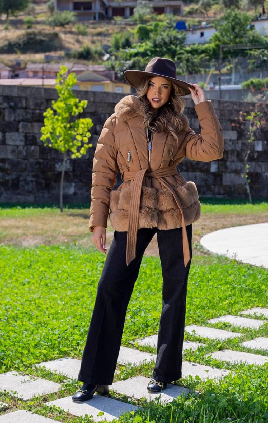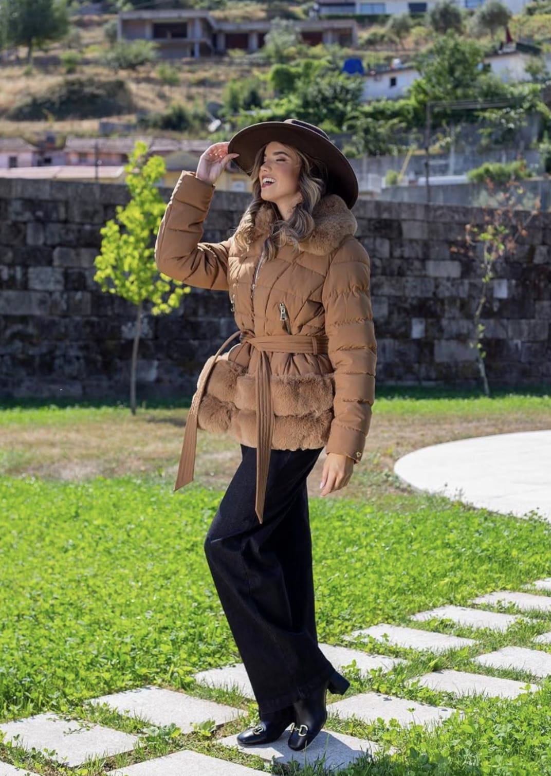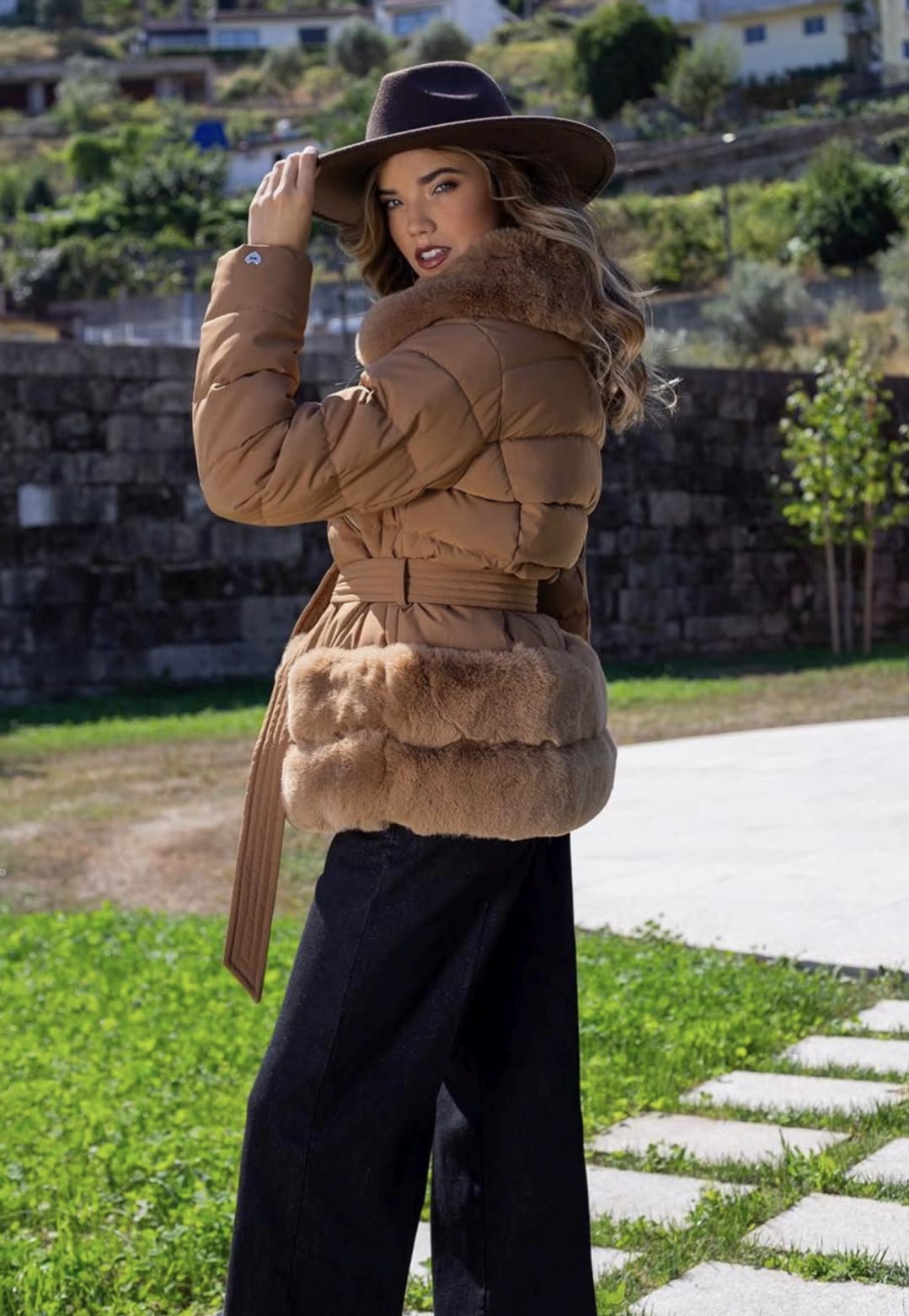 Elegante, quente e irresistivelmente sofisticado — este casaco em tom camel é a peça perfeita para elevar os seus looks de inverno. Com design acolchoado e aplicação de pêlo macio na gola e na zona inferior, garante conforto térmico sem perder o charme.