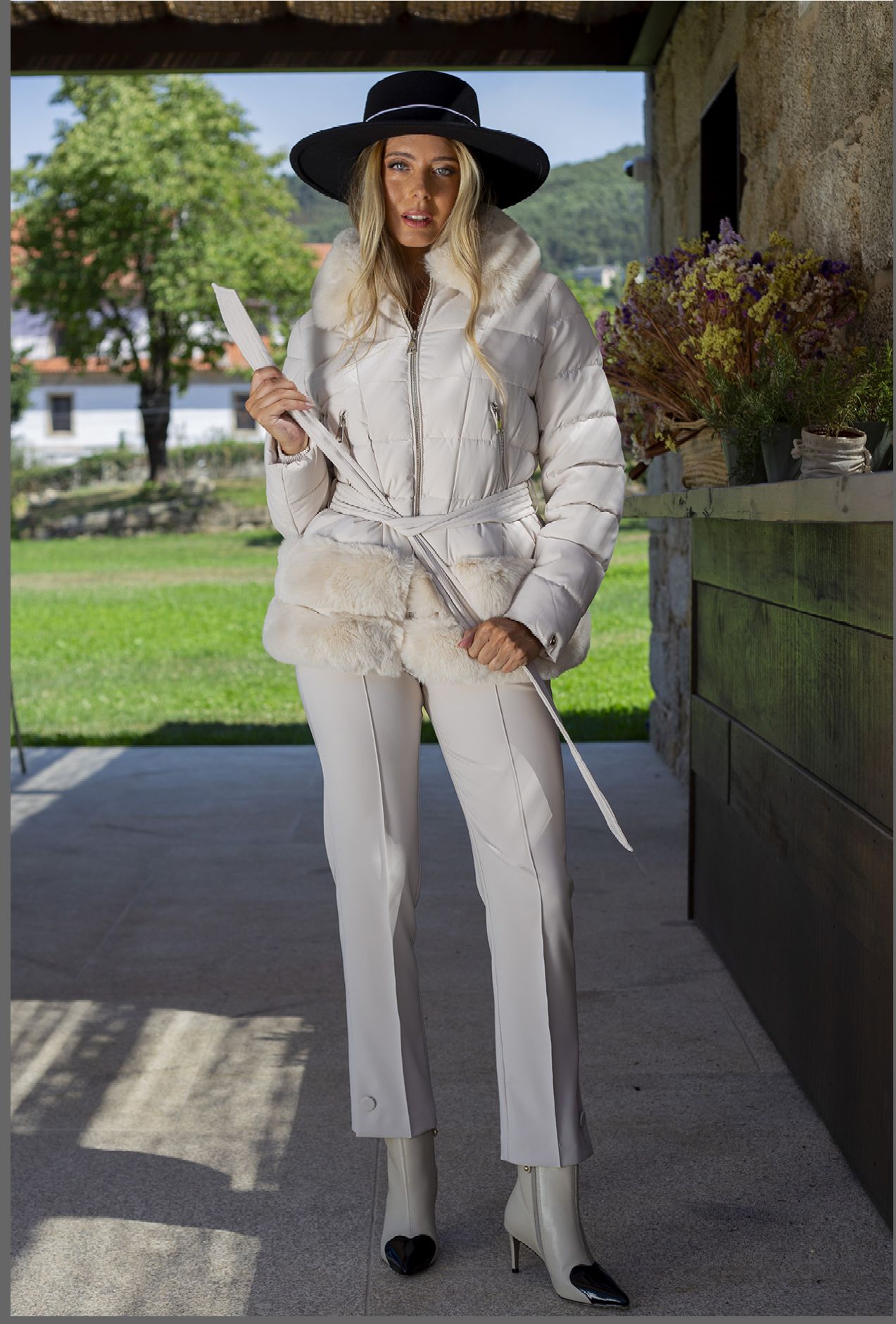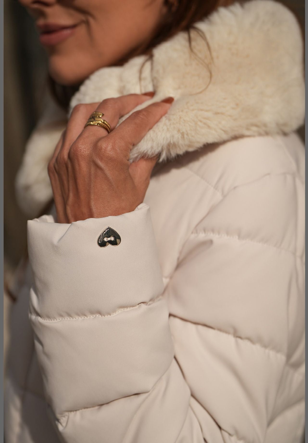 Elegante, quente e irresistivelmente sofisticado — este casaco em tom camel é a peça perfeita para elevar os seus looks de inverno. Com design acolchoado e aplicação de pêlo macio na gola e na zona inferior, garante conforto térmico sem perder o charme.