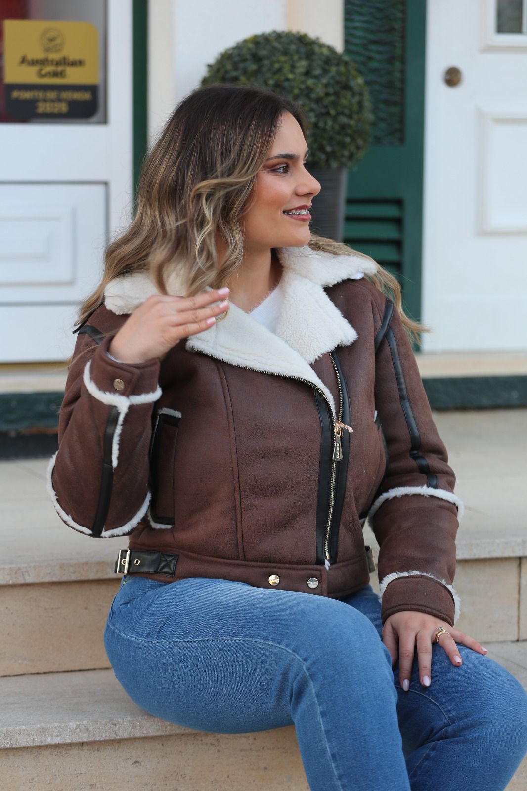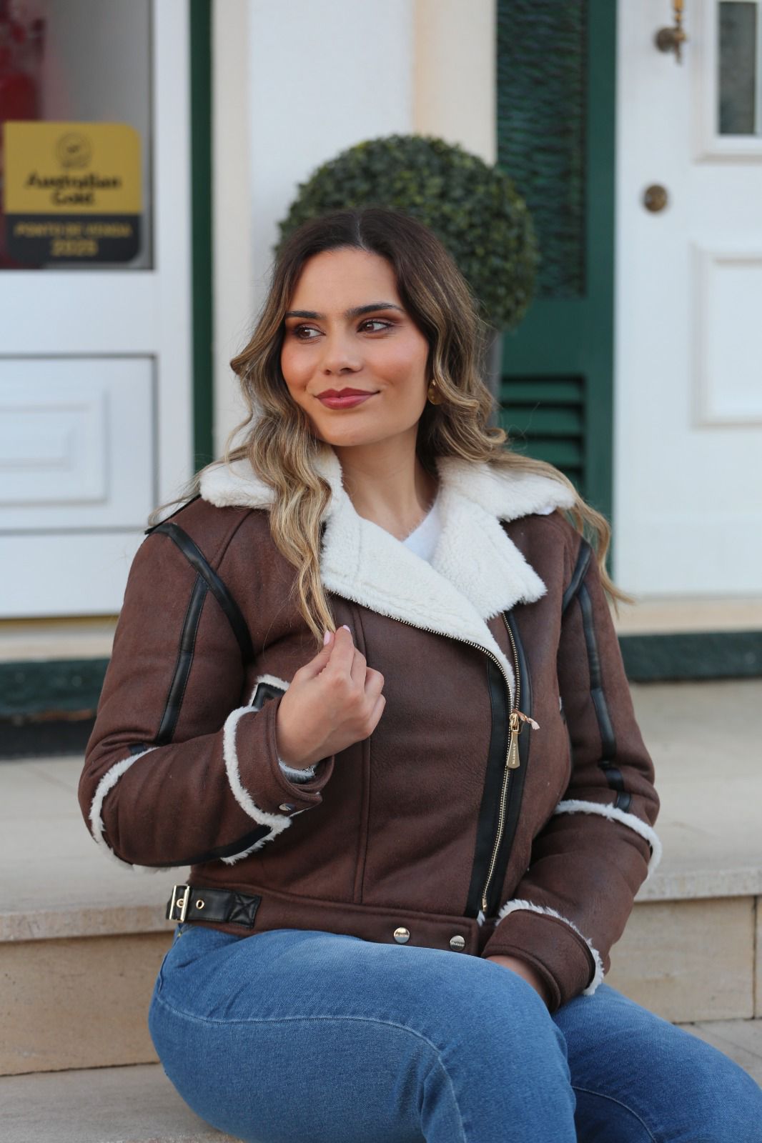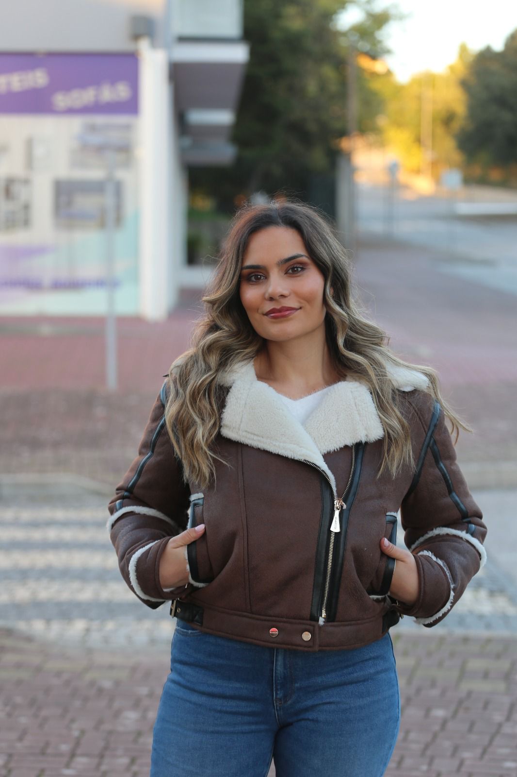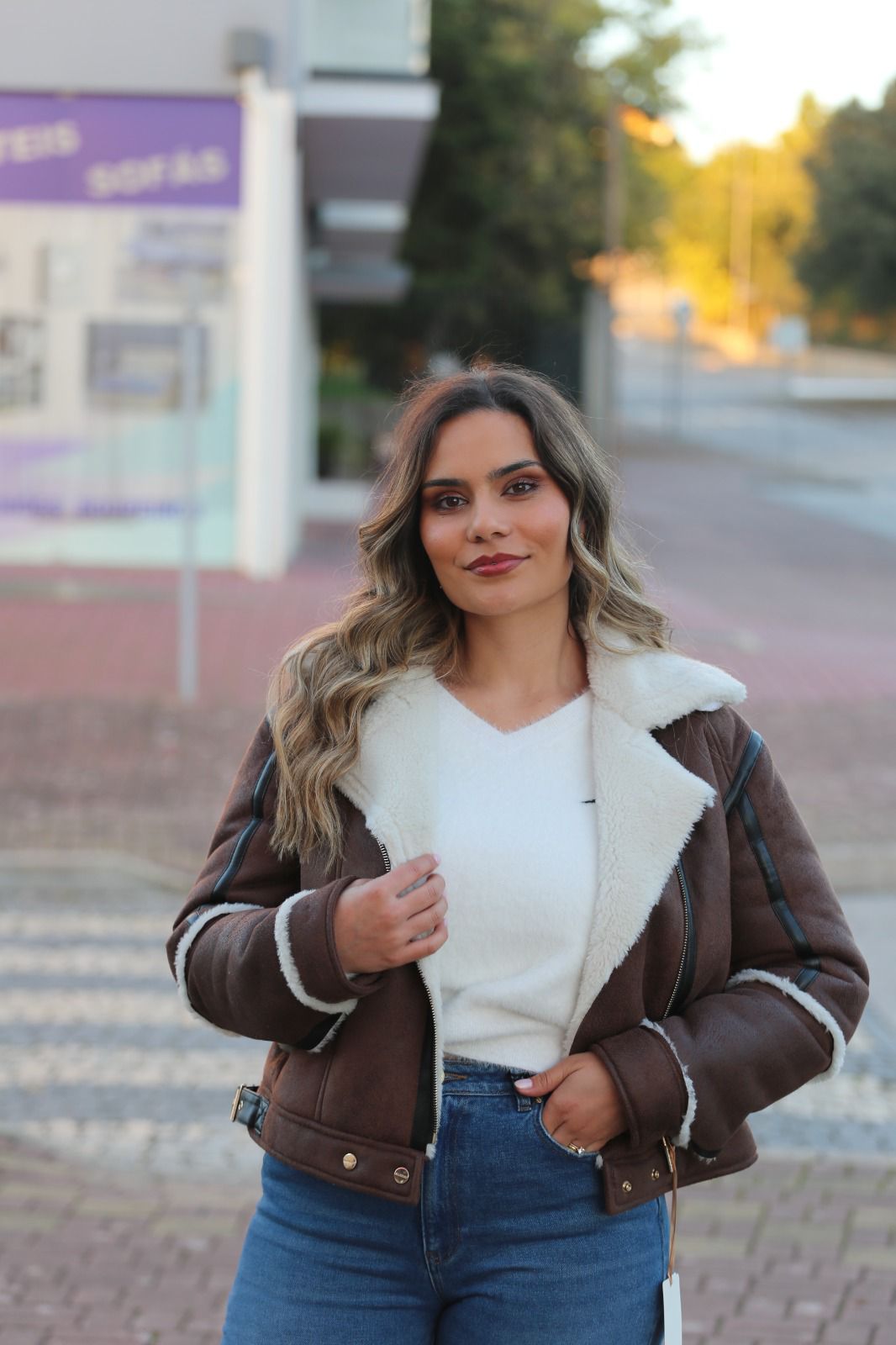Casaco estilo aviador em tom castanho, com forro interior em efeito pelo macio, pensado para oferecer máximo conforto e aquecimento nos dias frios. O contraste entre o exterior e o interior cria um visual sofisticado e intemporal, perfeito para looks de inverno cheios de personalidade.
