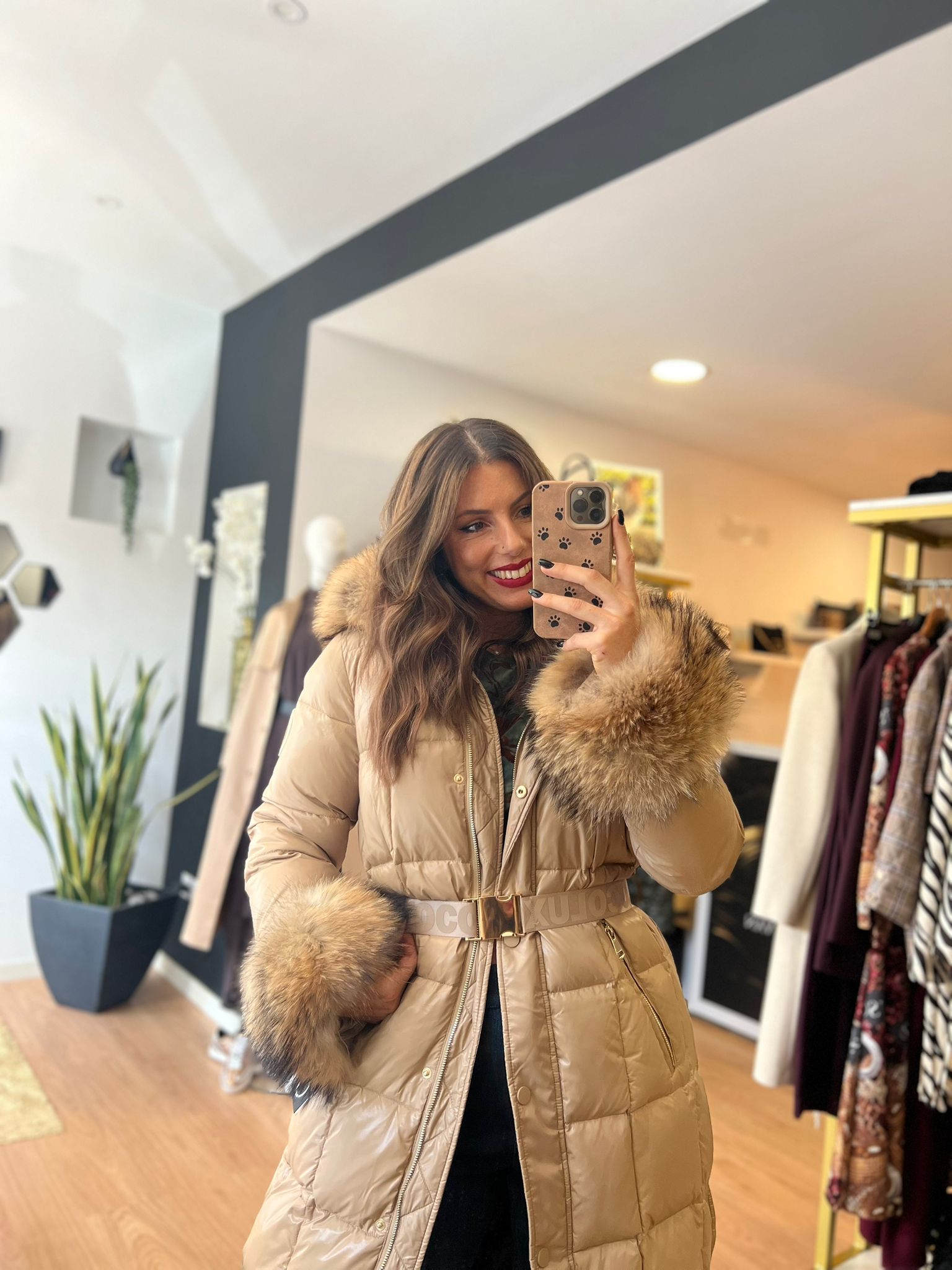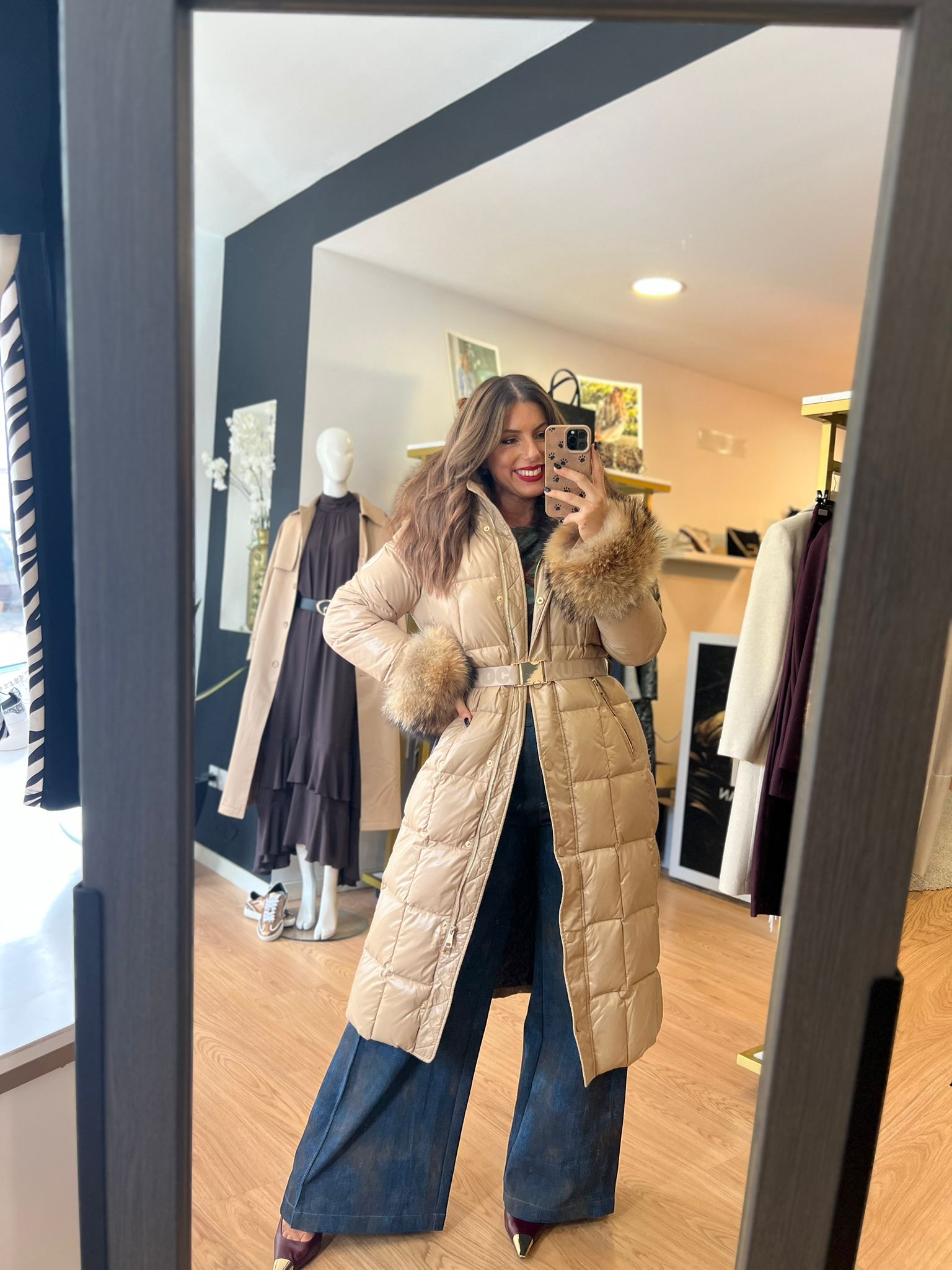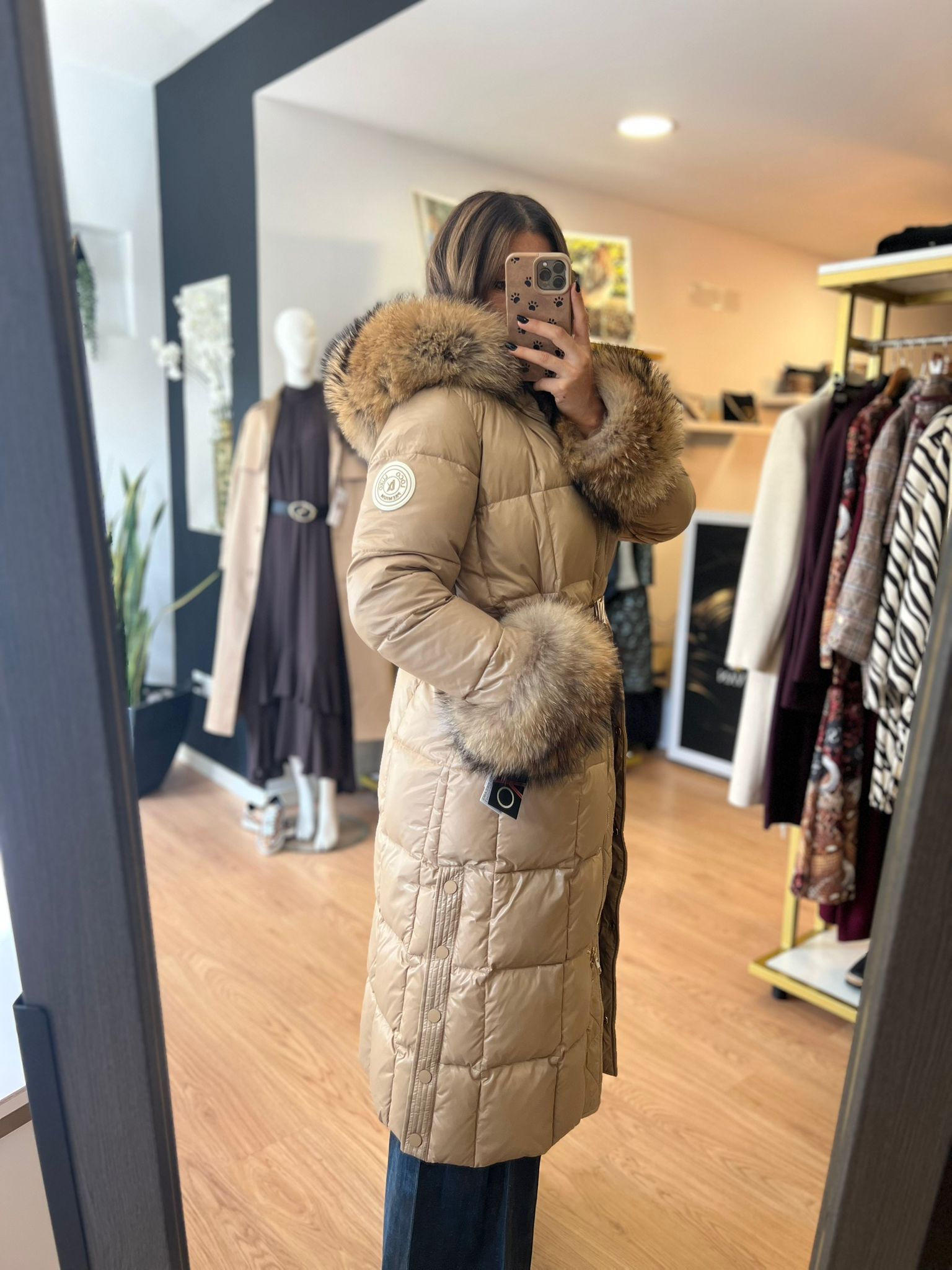 Elegância e conforto num só modelo. O Casaco Locoluxo Bege é a escolha perfeita para os dias frios, combinando um design acolchoado com acabamentos luxuosos em pêlo nas mangas e capuz.