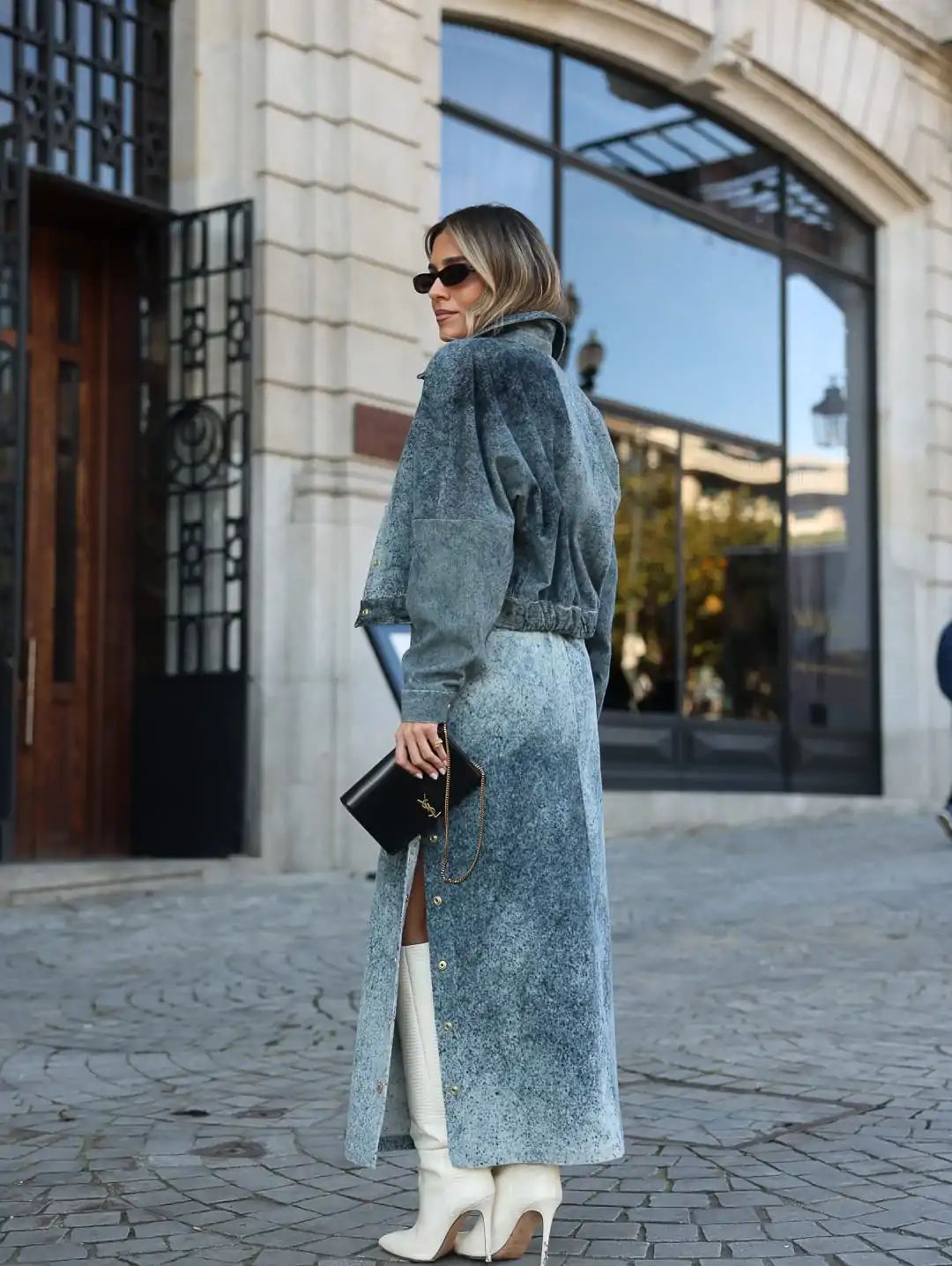 Um casaco moderno e cheio de estilo, perfeito para destacar qualquer look. Com corte curto e modelagem reta, traz um ar urbano e sofisticado. O tecido em denim marmoreado confere originalidade, enquanto os botões frontais dourados adicionam um toque elegante. Versátil e atemporal, pode ser usado em conjunto com a saia da mesma coleção ou combinado com peças básicas para um visual mais descontraído.