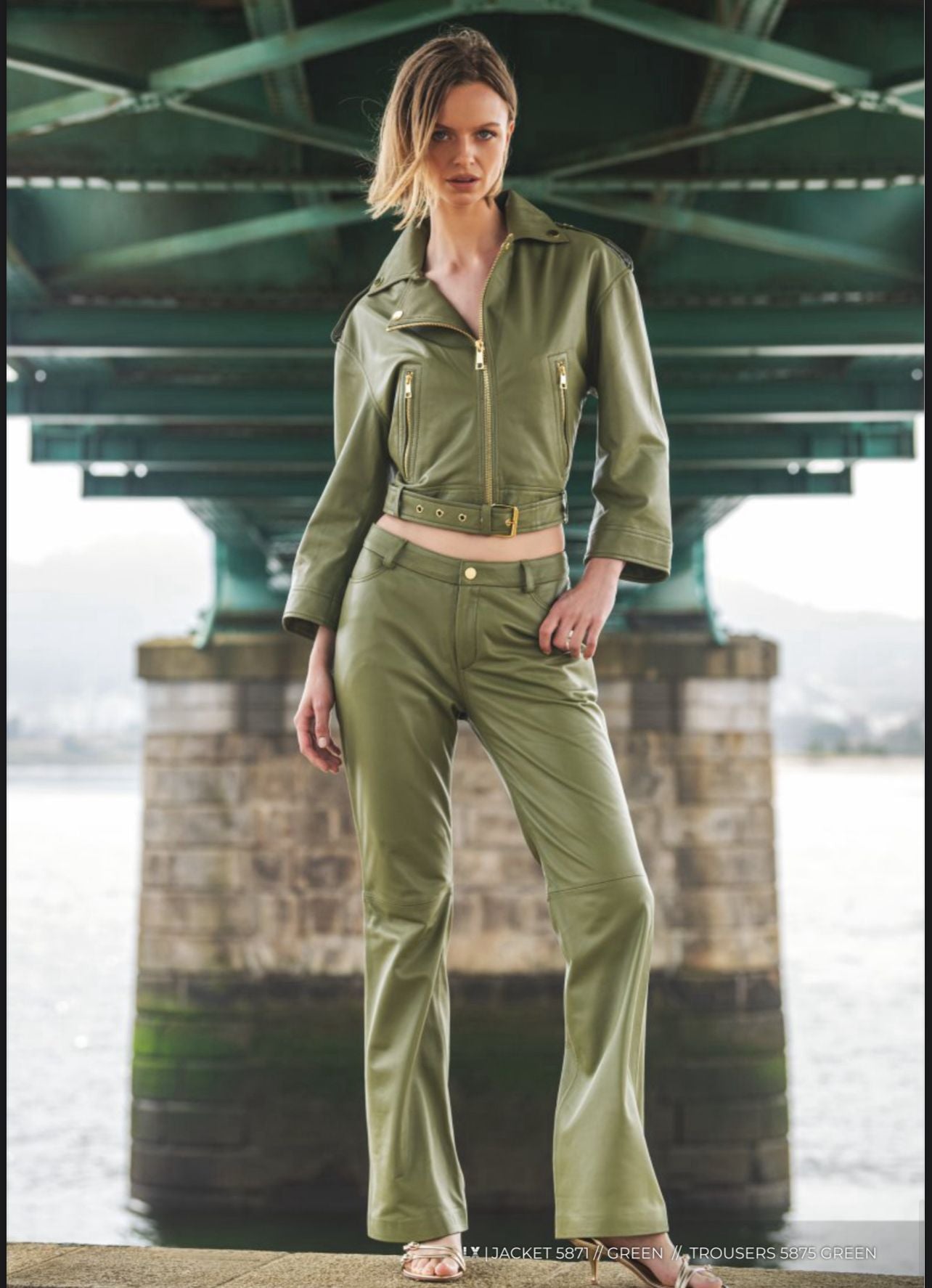 O design destaca-se pelo fecho frontal em dourado, bolsos com zíper funcionais e cinto ajustável na cintura, que permite um encaixe perfeito ao corpo. O comprimento ligeiramente cropped confere-lhe um ar atual e feminino, ideal para elevar qualquer look, do casual chic ao mais ousado.