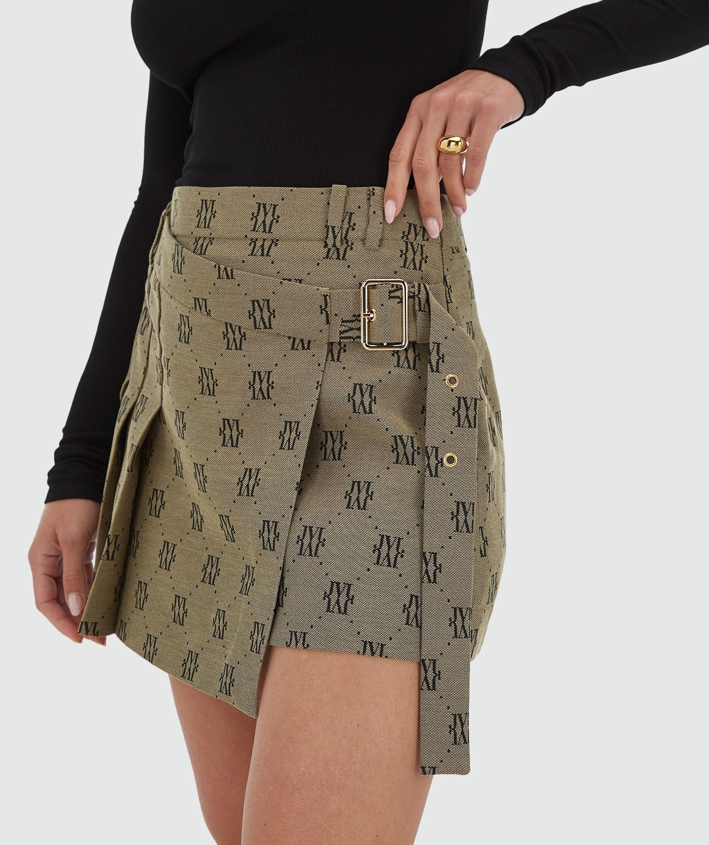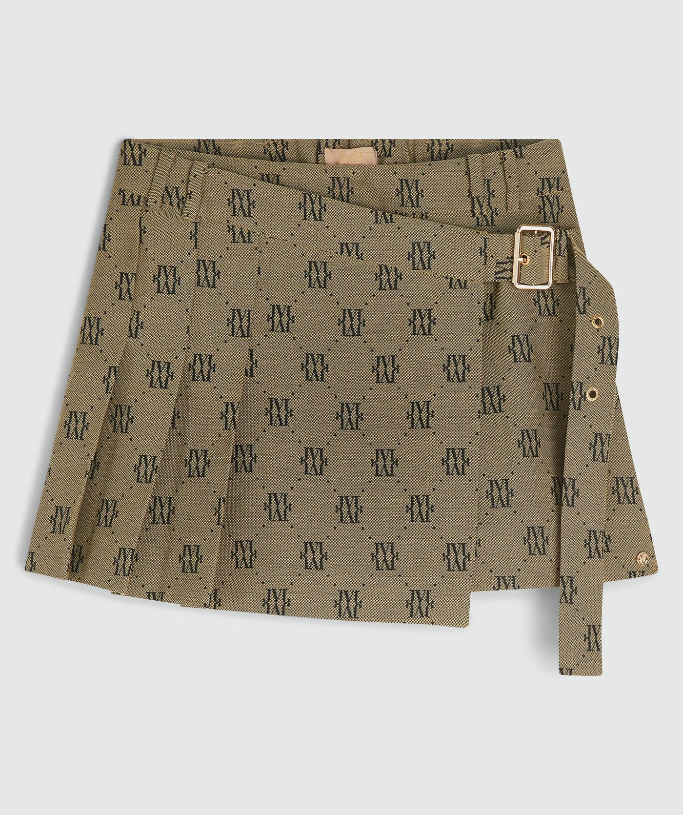 A saia-calça feminina JOSH V Isadee em bege e preto combina a descontração de uma saia com o conforto de um short. Feita em poliéster reciclado, a saia-calça apresenta uma estampa jacquard com o logo da marca por toda a peça. Combine-a com a blusa Berdina em azul claro ou com o blazer Remi para um look feminino completo.