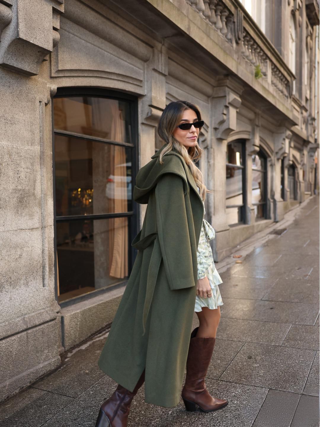 Um clássico moderno que alia elegância e funcionalidade. Este sobretudo apresenta um corte longo e sofisticado, ideal para dias frios, e um carapuço removível, que oferece versatilidade ao teu look: descontraído com capuz ou mais refinado sem ele.